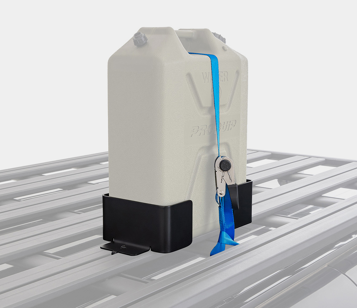 Take enough fuel or water to get you to the most remote destination with the Rhino-Rack Single Jerry Can Holder. This product is a space conscious resolution to your jerry can needs.